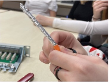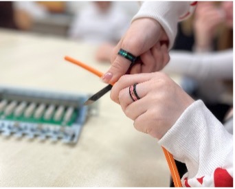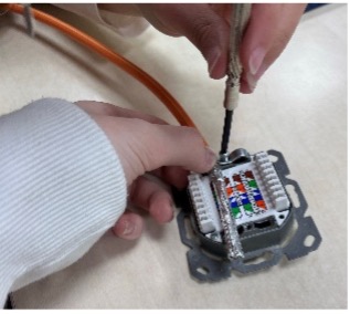 Zum Schluss probierten wir gemeinsam unser Kabel aus. An der Datendose steckten wir einen Computer an und Patchfeld verbanden wir mittels Patchkabel mit dem Schulnetz. Alles funktionierte mit einer Bandbreite von 1 Gbit/s einwandfrei.