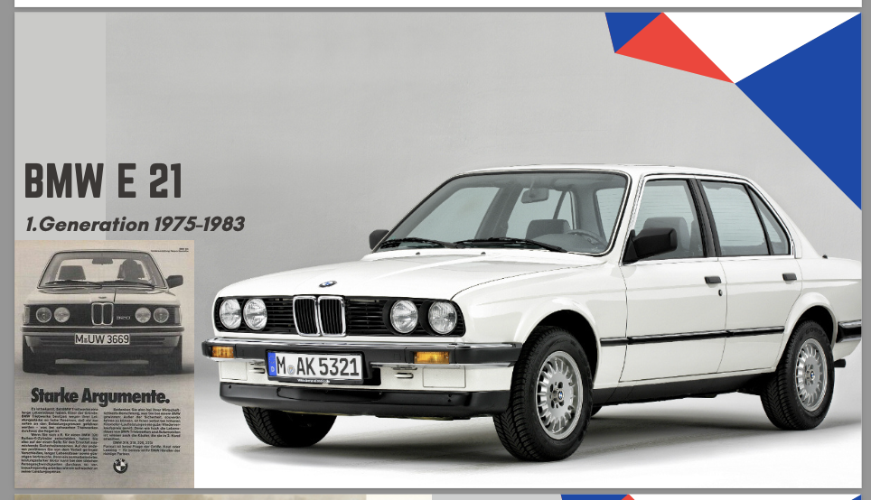 Dieses Medienportfolio wurde als Aufgabe im WOP-Unterricht der 4. Klasse erstellt. Der BMW 3er ist seit der Einführung im Jahr 1975 einer der erfolgreichsten Modellreihe von BMW. Er hat sich über die sieben Generationen hinweg weiterentwickelt und dabei technologische Innovationen und Designveränderungen durchlaufen.